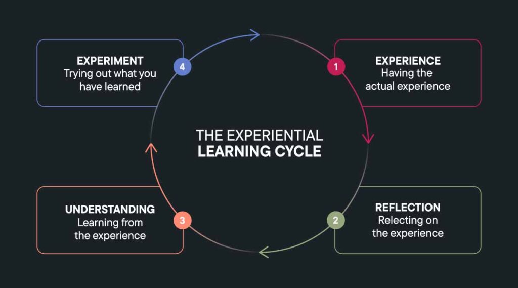 The psychologist David Kolb’s widely recognised model of experiential learning describes this process as a cycle involving four stages: